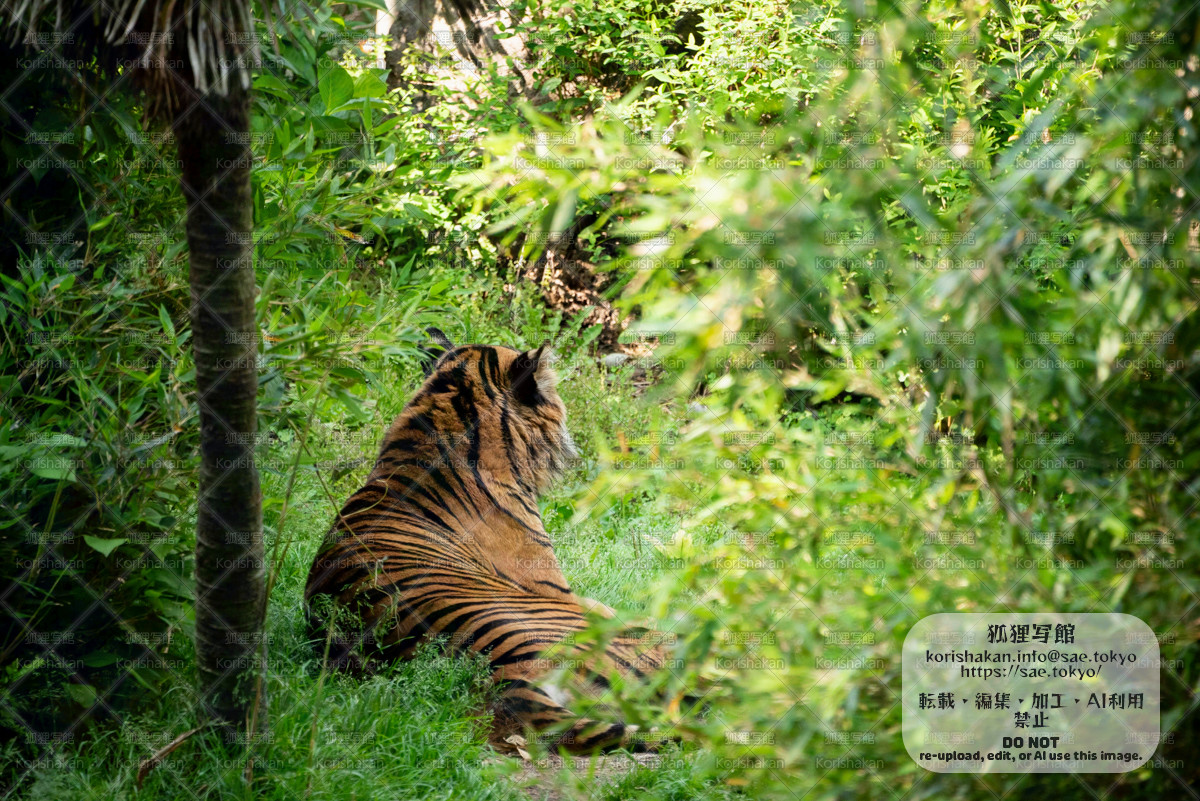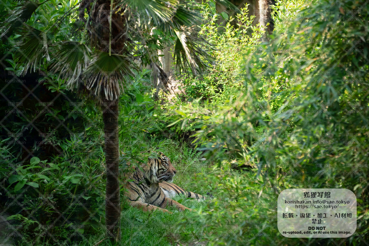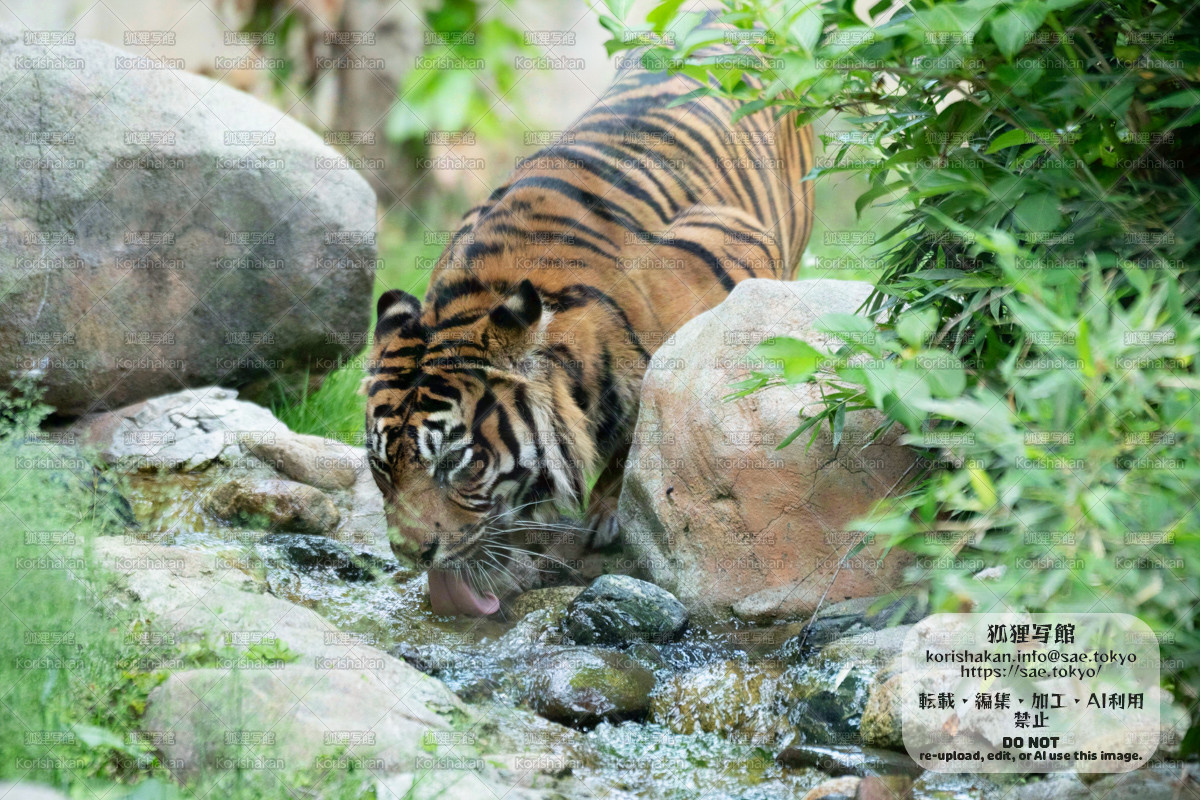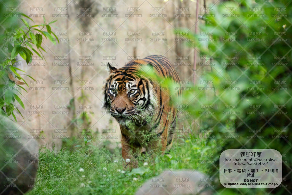 スマトラトラ(バユ) 動物園 2025.06.032025.09.10 午後の展示場の担当、バユさん。歩いたり、水を飲んだり、人間観察をしたり。日差しがぎらぎら暑い日でした。 📷2025/05/29仙台市八木山動物公園